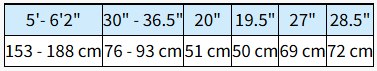 Please note: User height range per model indicated above is a general recommendation based on ISO Standards. If more personalized recommendation is required consult a health professional.
