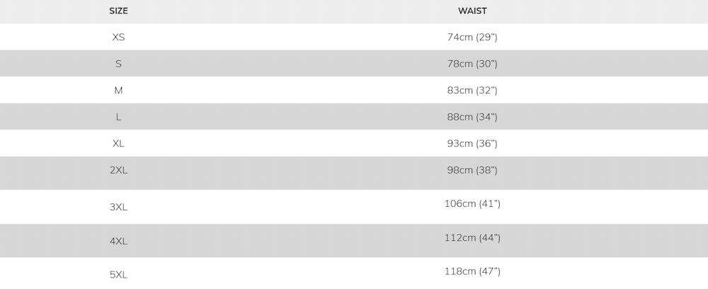 Adult Swimshorts - Size Chart