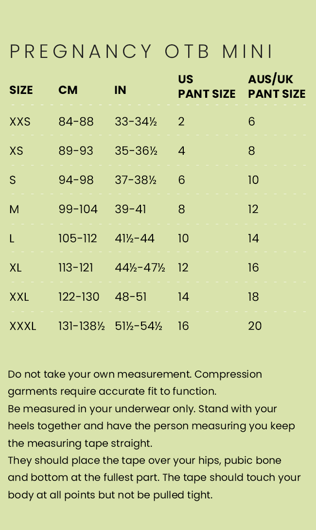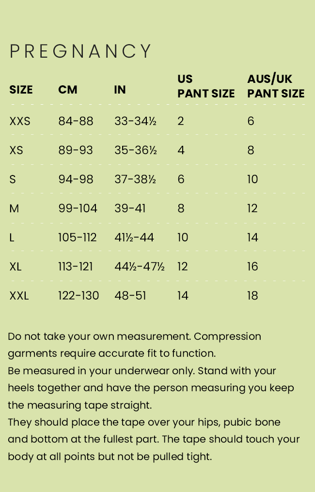 Correct measurement for our garments is crucial. As they are medical garments they may not always correlate to general/fashion clothing sizes. General fashion sizes also vary drastically by country and by brand (we find that an Australian XS can equate to a S or even M in American sizes) so we strongly recommend you have someone else take your measurements and use this guide to size yourself up.