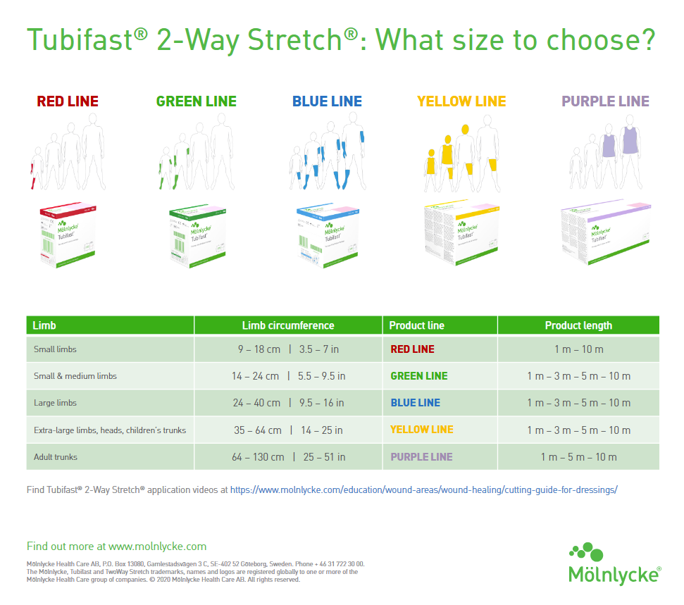 Tubifast® 2-Way Stretch® tubular retention bandage is a lightweight, elasticated bandage with radial and longitudinal stretch. It is suitable for dressing fixation without the need for pins or tapes, and for use as a skin covering for any part of the body. The product is also designed for wet or dry patch wrapping and can be used as an undercast stockinette. Its 2-Way Stretch Technology allows patients complete freedom of movement.